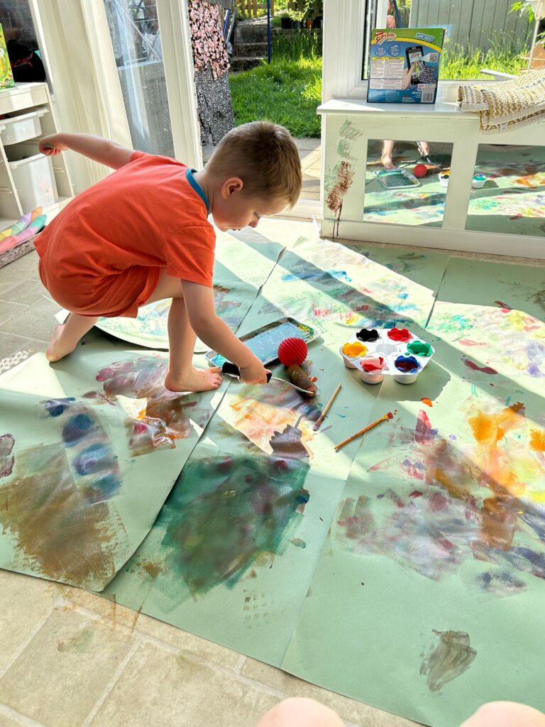 - Printing: use different shaped sponges dipped in paint to print on a big piece of paper – together you and your child can count how many shapes they have printed