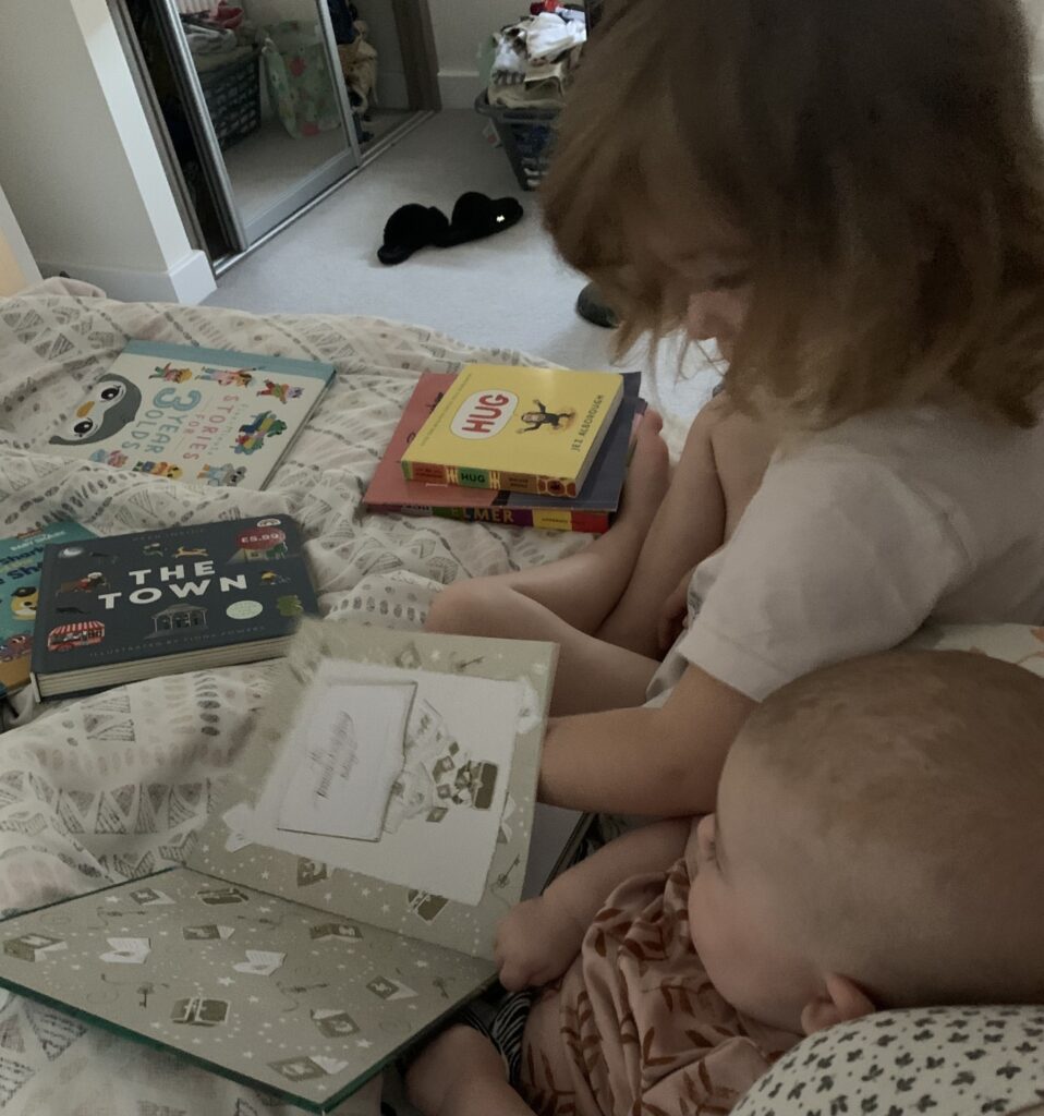 - Phonological awareness: eventually your child will start to notice the text on the page, and you can start showing them that each letter represents sounds/phonics