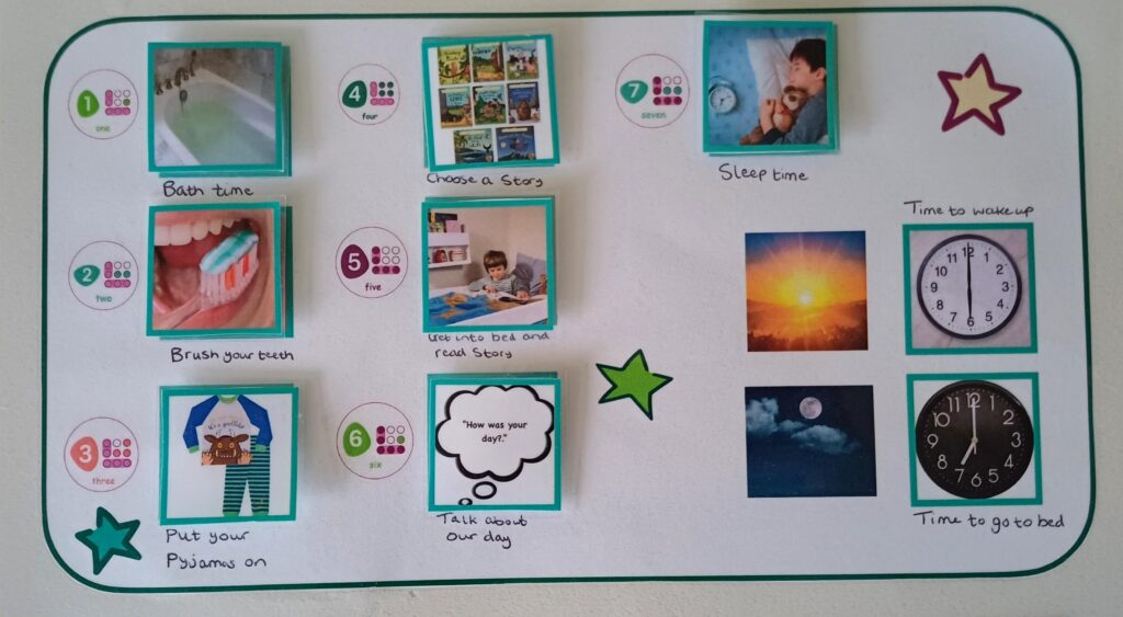- Use photographs: start off with photos of your child doing the activities, this way they can relate to the images